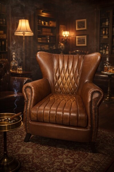 ZART-M018F-01-1D Lederen fauteul incl asbak
